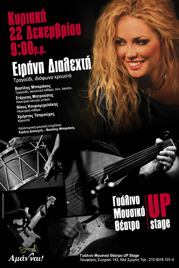 H Ειρήνη Διαλεχτή και οι Αμάν ναι! εμφανίζονται την Κυριακή 22 Δεκεμβρίου στις 21:00, στο Γυάλινο Up Stage (Λεωφόρος Συγγρού 143) σε ένα νέο πρόγραμμα με Ethnic χαρακτήρα.
